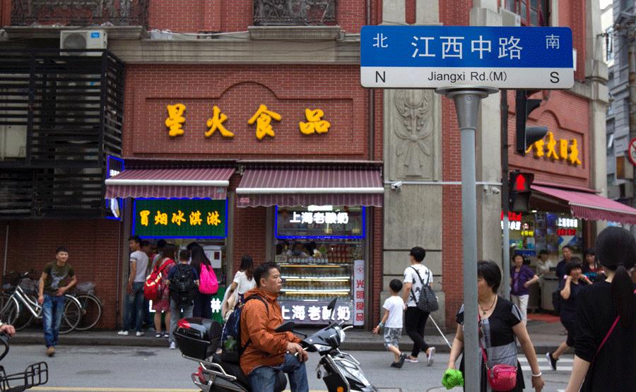 换换口味,从步行街往外滩方向向东走,你会看到在北京东路与江西中路的路口有一家星火食品,这家店的历史大概可以写一本书,这里先不谈。看到星火食品,左拐沿着江西中路一直走,不远处就是下一家局座推荐的小店。