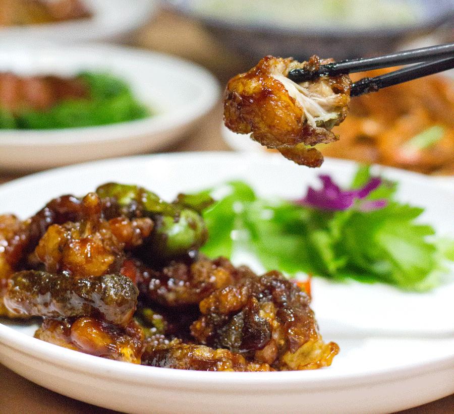 酱爆牛蛙是这里的一道特色菜,牛蛙一改外面水煮、椒盐、干锅的川渝流烹饪方式,走的是老上海传统酱爆的路线。