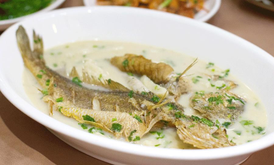 这道菜可以说是招牌菜,一上菜,香气扑鼻而来,鱼汤颜色温暖而柔亮,舀一勺汤,满口浓郁的黄鱼鲜味儿,不夸张,黄梅天里局座竟然打了个冷颤,怎会有如此鲜美之物。