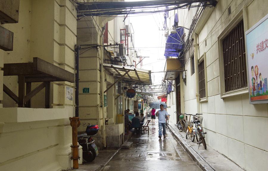走到步行街的中段,在吴良材眼镜和朵云轩的中间,置地广场的对面,有一条不起眼的小弄堂叫“五福弄”。如果不是特地找过去,你根本不会知道繁华的步行街背后还有这么一条弄堂。