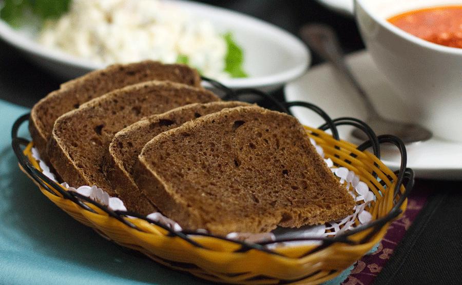 黑面包是俄罗斯餐桌上的主食,颜色像中国高粱面窝头切成一片一片的样子。入口似乎还有些酒味,面包被发酵得很好,口感不是特别硬,可以泡红菜汤吃,也可以涂上奶油一起吃,十分百搭。