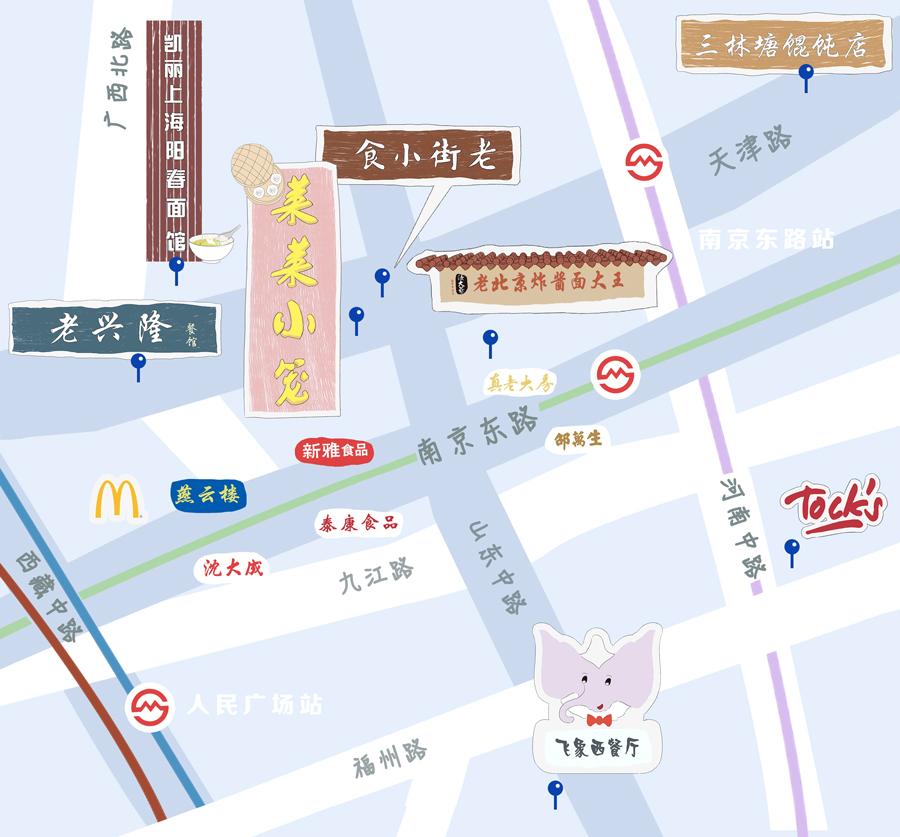 南京东路附近小马路小巷子很多,为了让大家找美食更方便,这次直接先上地图,方便大家收藏本篇后按图索骥。
