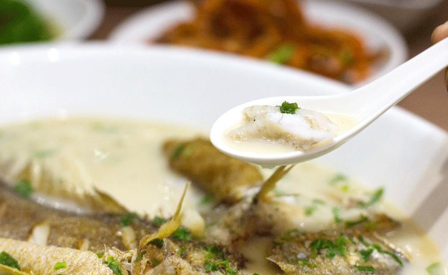 鱼皮被炸的很香脆,拨开鱼皮,白花花的鱼肉映入眼帘,肉质细嫩软滑,送入嘴里不用牙齿便化在口中,齿缝间都弥漫着黄鱼的鲜美味。鱼汤里的面疙瘩充分吸收了汤的鲜味,面筋道,不仅十分弹牙还弹筷子。一口鱼肉,一口面疙瘩,再来一口鱼汤,米道叫管好~