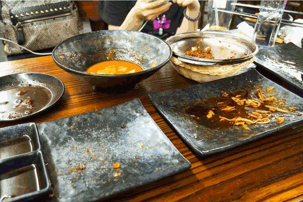 浓浓的酱汁下,让增加了蟹肉些许甜味,配菜的年糕也毫不示弱,局座已经分不清是酱好吃还是年糕好吃,只知道大牙快被软糯的年糕黏住了,比起螃蟹,它好像更受欢迎一点,稍不留意,盘子里的年糕已经没了踪影。