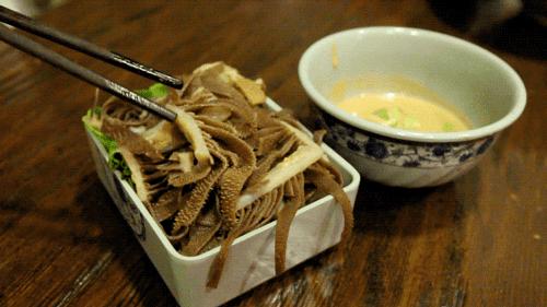 毛肚很脆,非常新鲜,他的吃法是蘸着自制麻酱来实用,局座感觉有点像在吃火锅。就差找个锅在水里涮一涮了。吃完感叹,店家名字起得真好,你大爷果然还是你大爷。