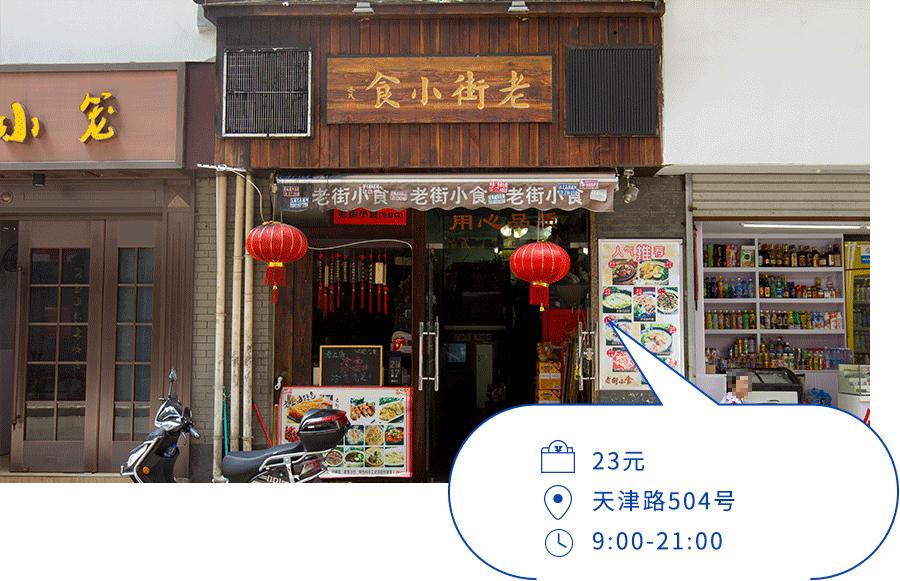 第二家店找起来就方便了,“老街小食”就在“莱莱小笼”的贴隔壁。木质的招牌,红红的灯笼,相比莱莱的“朴素”,他的门面就显得喜庆多了。但怎么说,名字起得不好,总让人觉得是吸引游客的套路小吃店,一不小心就错过了这家美味。