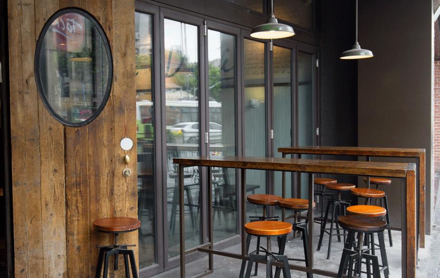 小店的装修其实很简单不花哨,门外摆放两张露天长桌,经常会有“歪国人”围坐在外,边喝酒边聊天。店内灯光明亮,老板的各式收藏挂于墙头,开放式的厨房尽收眼底,很有美式乡村餐厅的味道。