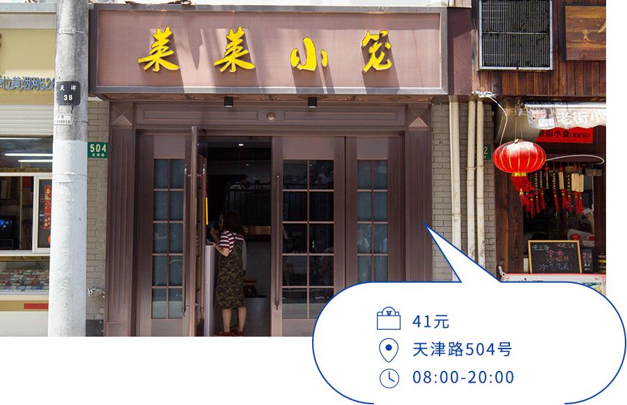 从广西北路天津路交叉口向右转,就来到了第一家隐藏小店。局座第一次来的时候,是被朋友拉着来的,抬头看到招牌就脱口而出——“菜菜小笼”。一边讲一边心里犯嘀咕,门面很不起眼也就罢了,这小笼里包着菜,能好吃吗?
