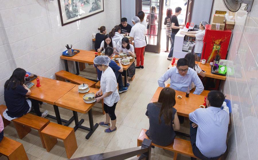 推门进去又是另一副光景,小小的店内吃客络绎不绝,店内干净明亮,二层小楼,桌面整洁,地板干净。