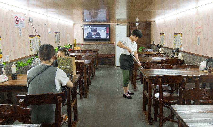 推开门,店内小而别致,一楼摆放三四张桌椅,二楼沙发若干,环境干净整洁,白底蓝花的器具、木质筷子摆放地井井有条。探员感叹,“有点腔思额嘛”。只是墙上的挂的画稍稍有点歪,让局座看了有点想帮他们扶正。