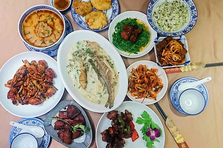 幸好局座来之前定了一下位子,饭点刚过,才坐下不久,小店内就宾客满座,好不热闹。两个冷菜,五个热炒,两个点心,一个汤,满满一桌子十个菜就500元都不到,地道的浓油赤酱,每道菜都令人满意。