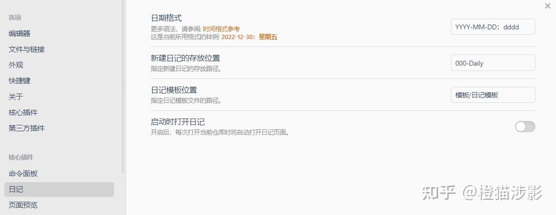我没有研究区分自带和插件的之间会有什么影响,就把设置都放出来。我的日记命名格式为"2023-01-11:星期三",在日记插件对应设置: