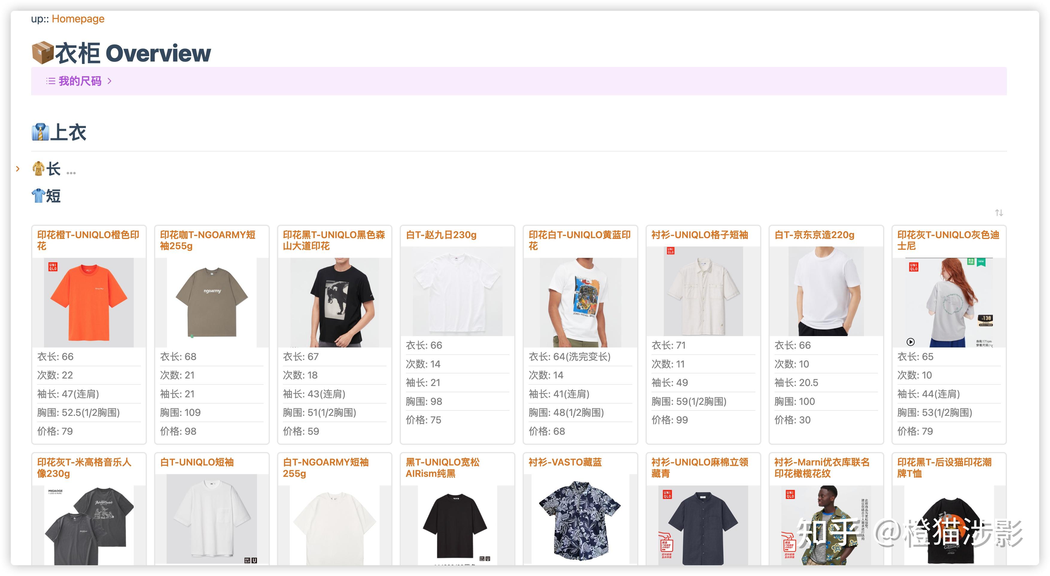 衣柜衣服太多,挑起来很费劲。我把它们全放到 obsidian 里,非常直观。