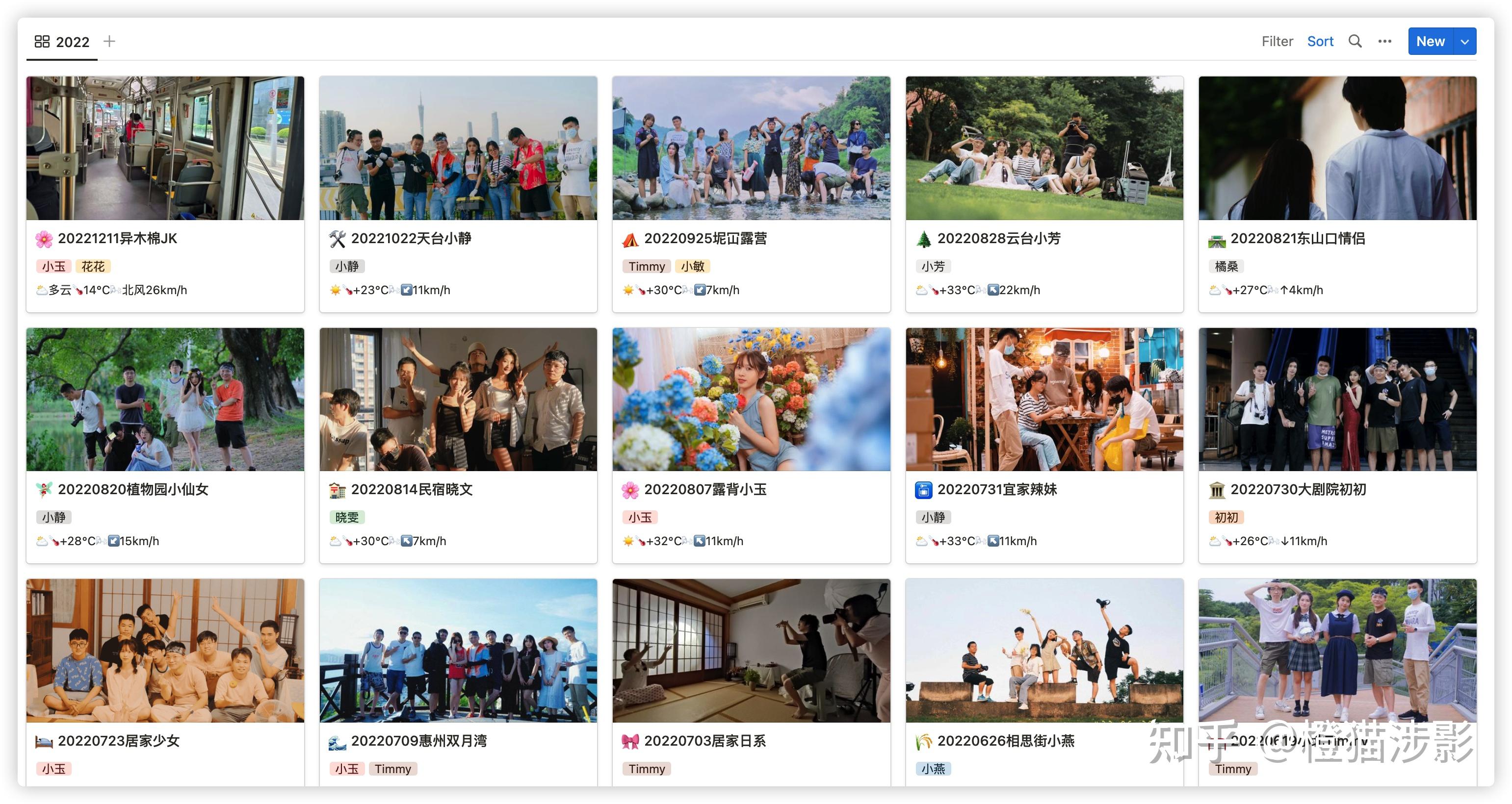 Notion 我最喜欢的功能是 Gallery view,为我的照片又提供了一个用途,可视化的记录查看起来非常直观方便,也很适合成为视频的展示素材。