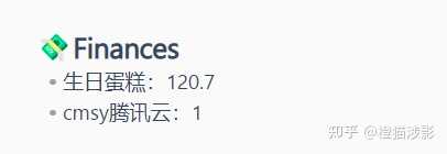 日记中的记账样式,采用无序列表,":“或”:"后面必须接对应的消费金额,如下图: