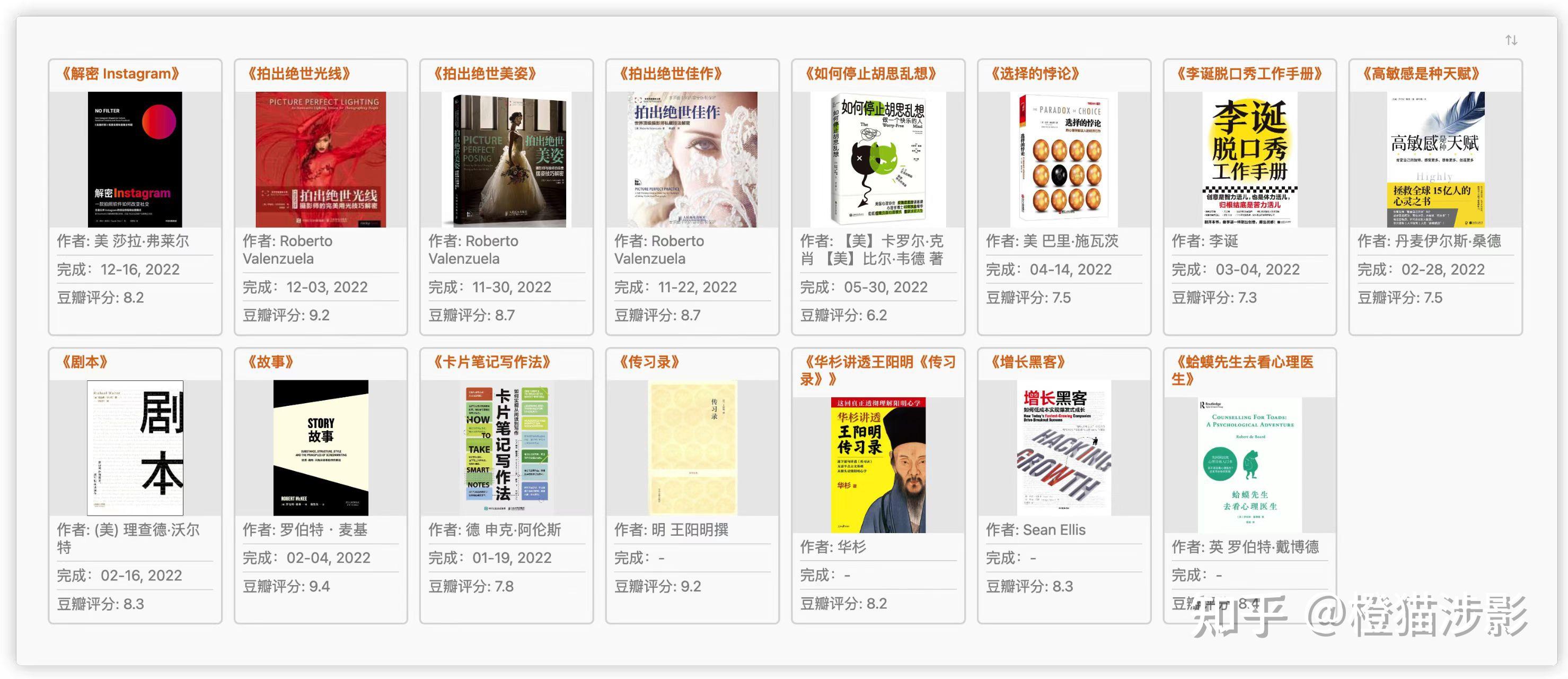 在 Obsidian 中同样也有相似功能,依赖主题搭配 css 去实现。方法参考:由豆瓣建立 Minimal 样式主题的阅读书单卡片
