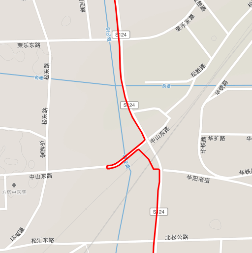 到达沪松公路后右转向南,前行一小段后路名变成了松卫北路,请不要惊慌,保持冷静和克制。沿松卫北路一路南行,到达34KM处时,你的面前有一个高架匝道口,千万不要上去。上面禁止非机动车通行,请走右侧辅道。到达中山东路后,右手边有没有红绿灯控制的斑马线可以过马路。过到路南侧后可以看到一个小随道,通过隧道穿越铁路后延S124继续南行。