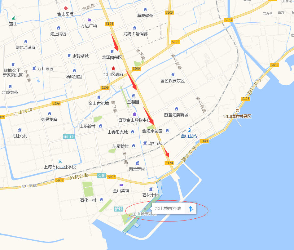 - 可经由金山石化作为中转站,向西进入平湖。从石化到九龙山的距离大概是25KM左右,全程省道(S209 - S101)