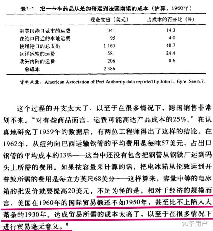 二十世纪六十年代,跨国海运贸易的运费高达产品成本的25%,以至于跨国贸易长期停滞。