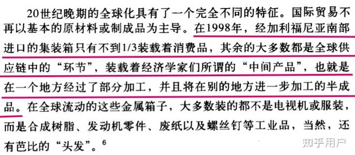 廉价的海运价格让被海洋分割的西方工业体系联结成一个整体,国际贸易不再以原材料和制成品为主导,中间品成为海运的主流,现如今,各国之间的贸易结构中,70%以上是零部件半成品,全球经济因为集装箱而变成一个整体。