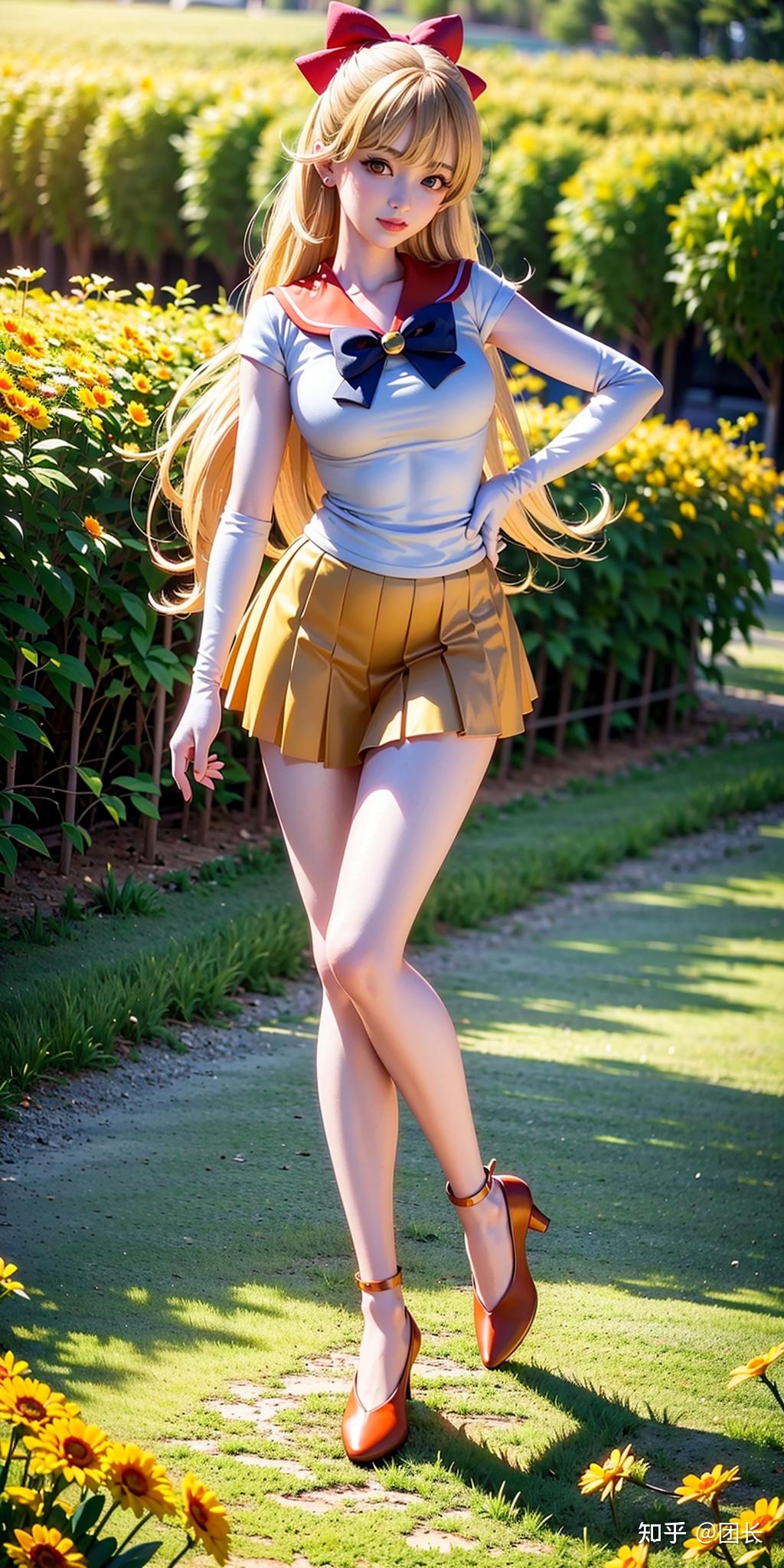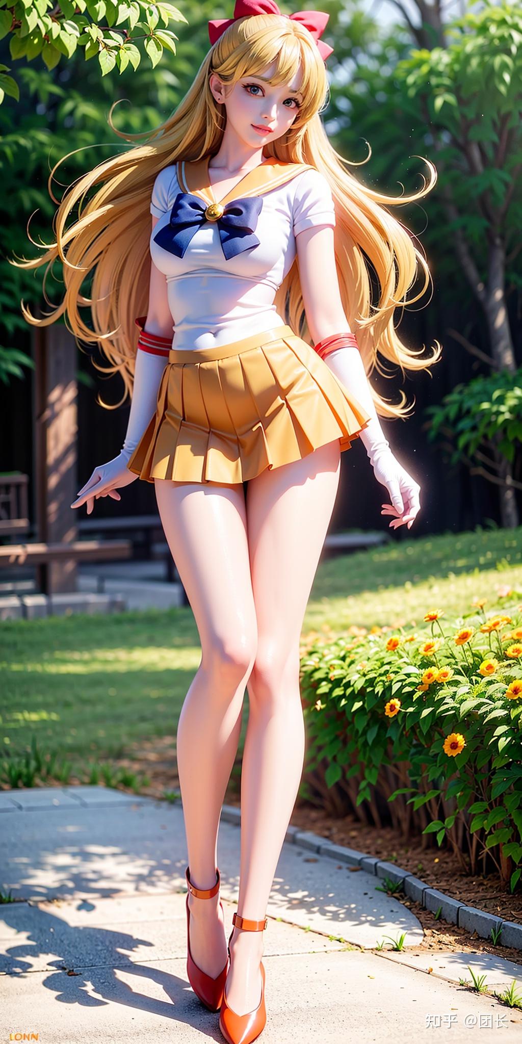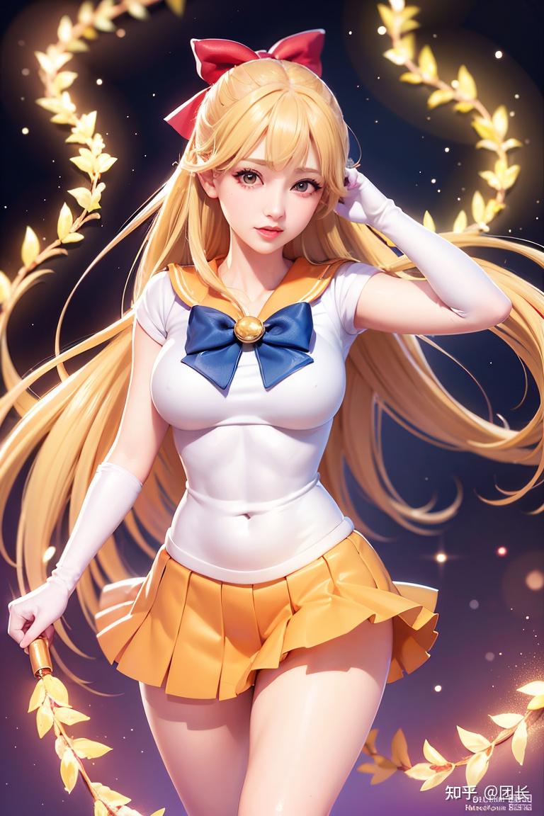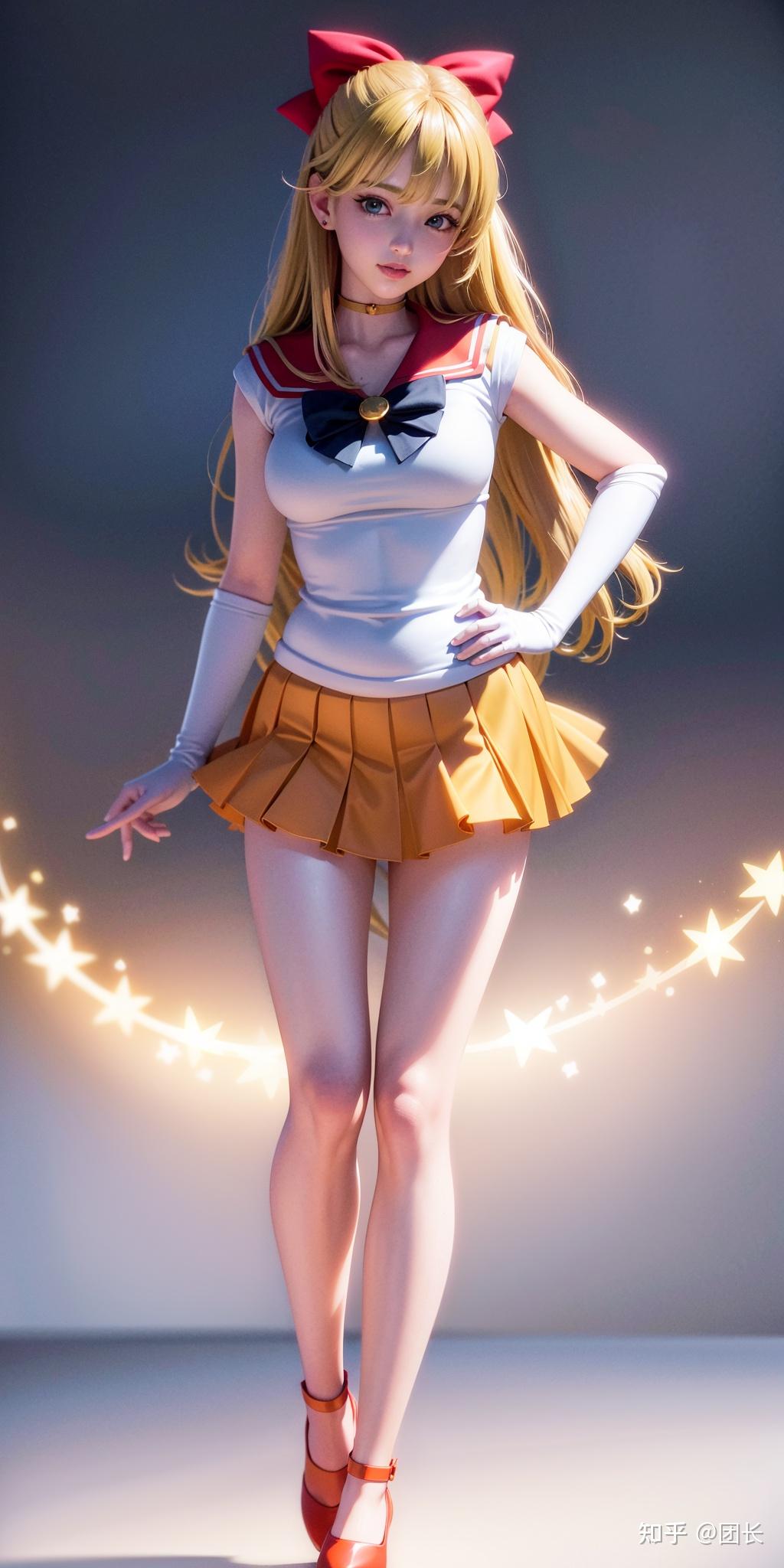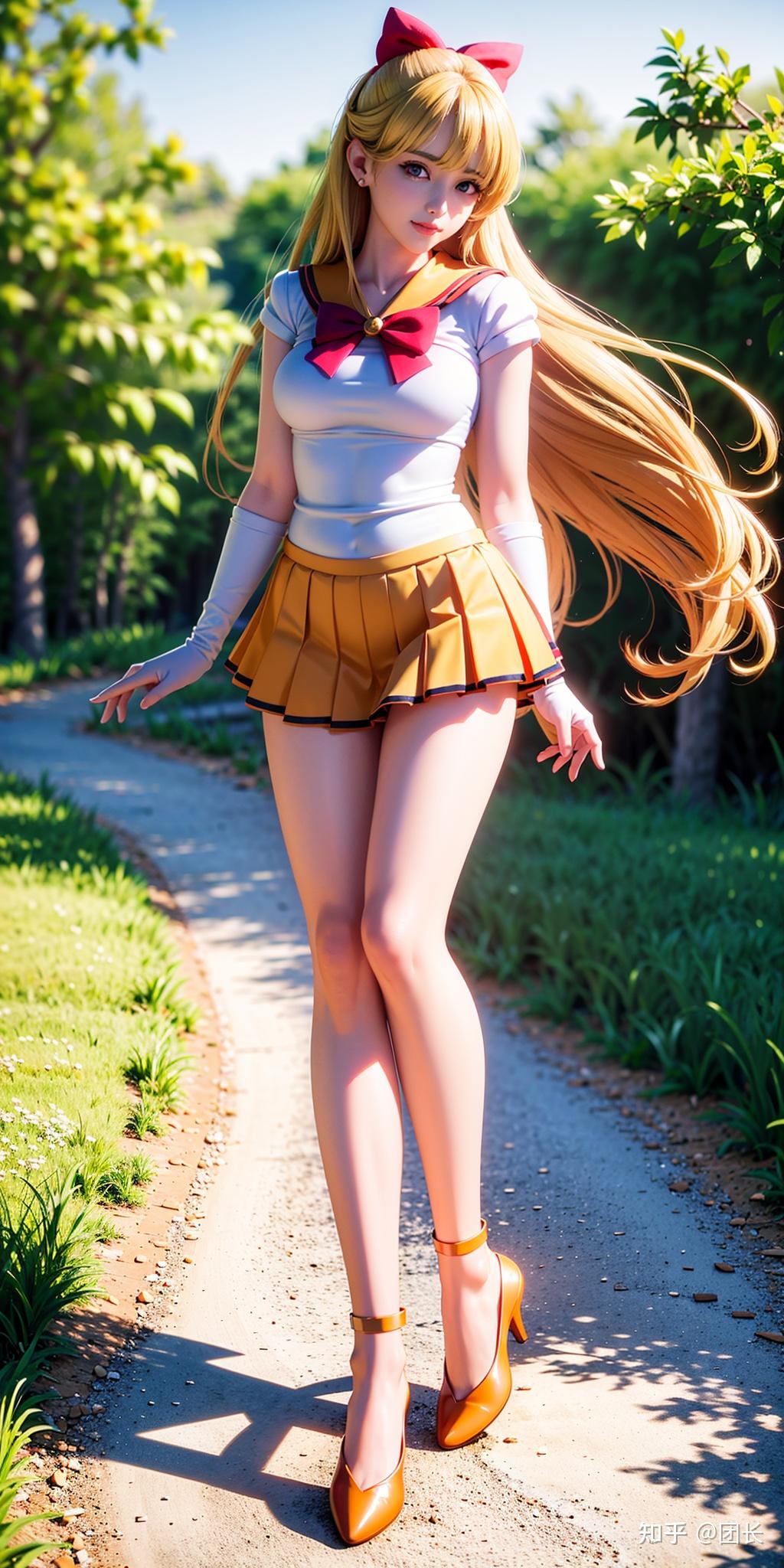 full body, red shoes, venus1, 1girl, solo, sailor senshi uniform, blonde hair, magical girl, blue eyes, orange skirt, elbow gloves, tiara, pleated skirt, hair bow, orange sailor collar, miniskirt, red bow, orange choker, white gloves, very long hair, jewelry, earrings, smile, unparalleled masterpiece, ultra realistic 8k CG, perfect artwork, ((perfect female figure)), narrow waist, chinese deity, looking at viewer, seductive posture, sexy pose, clean, beautiful face, pure face, pale skin, divine goddess, shiny skin, skindentation, glint lora:sailorVenusSailor\_v10:0.7, ulzzang-6500-v1.1, Show belly button lora:chilloutmixss20\_v20:0.3, (8k, RAW photo, best quality, masterpiece:1.2), (realistic, photo-realistic:1.37), ultra-detailed, (long legs:1.3),