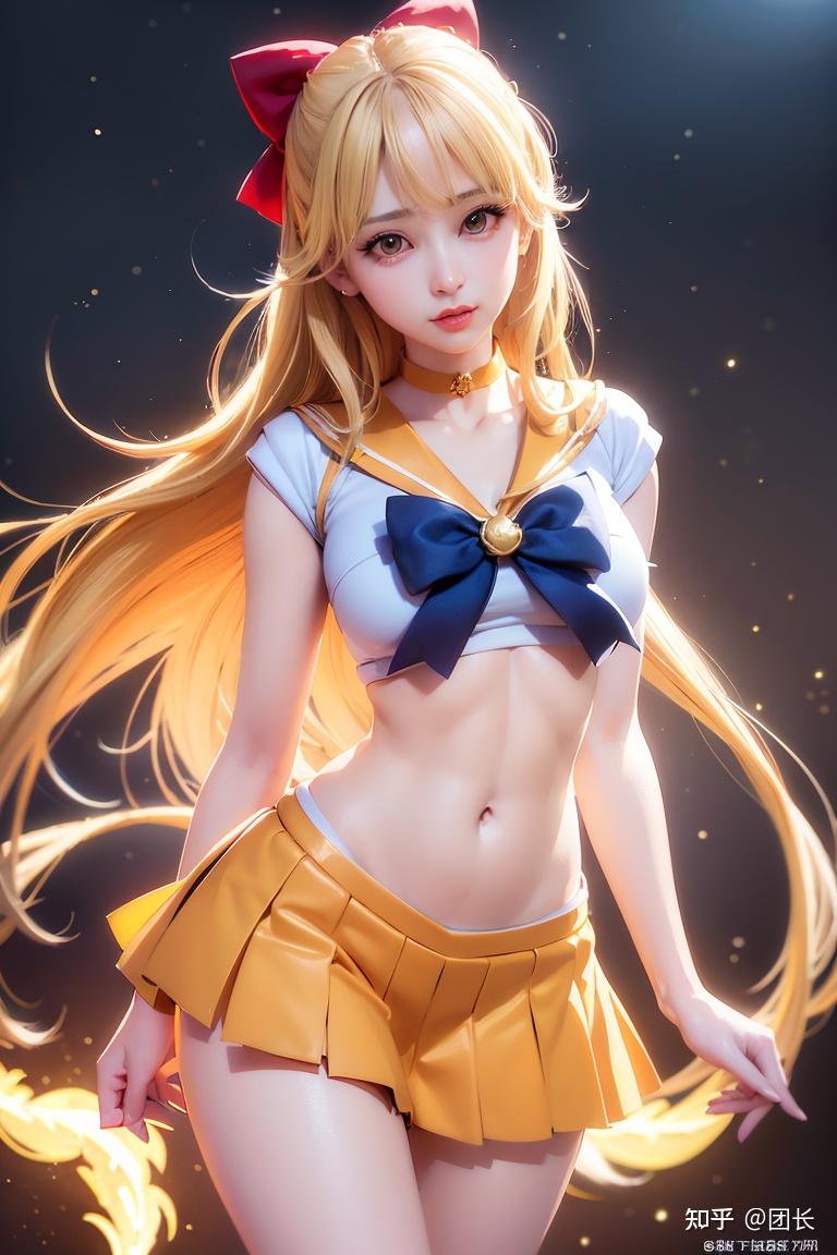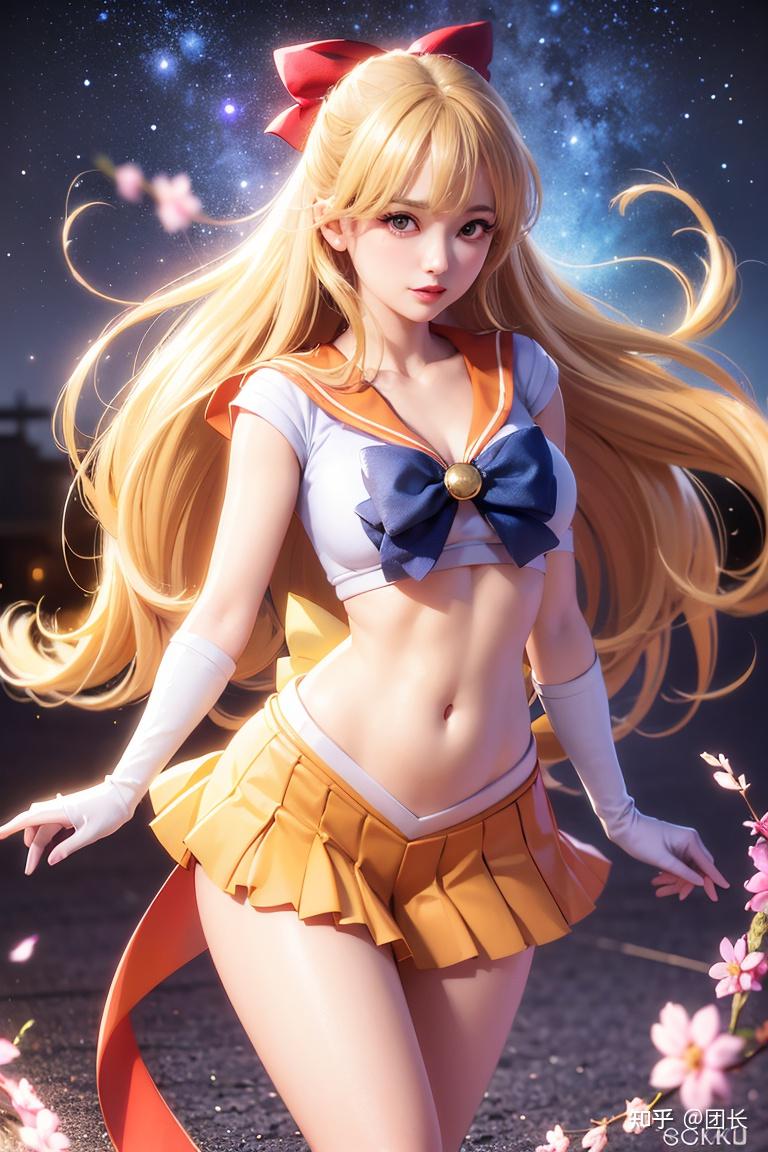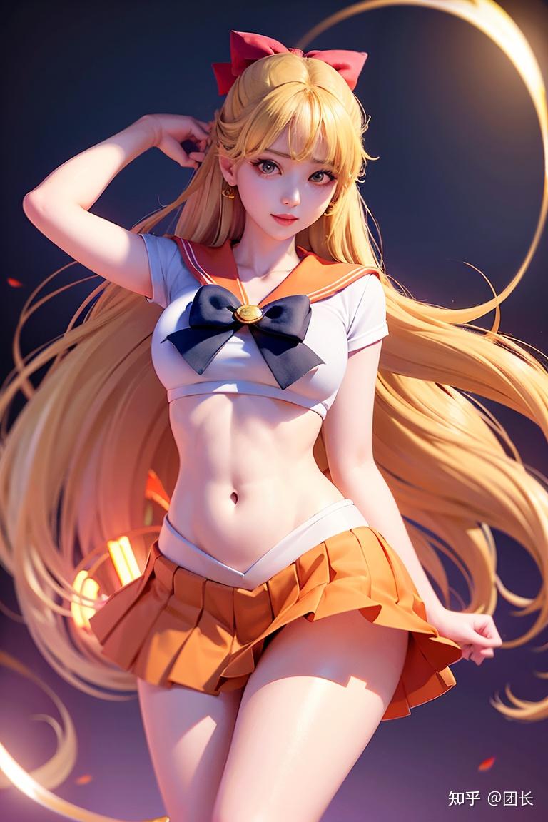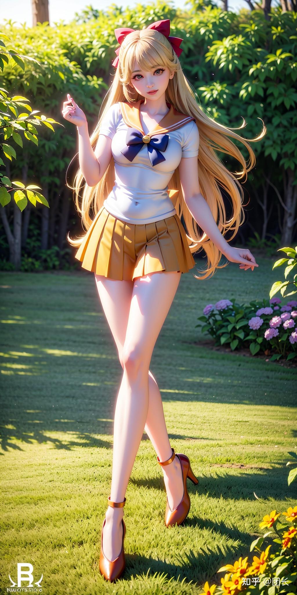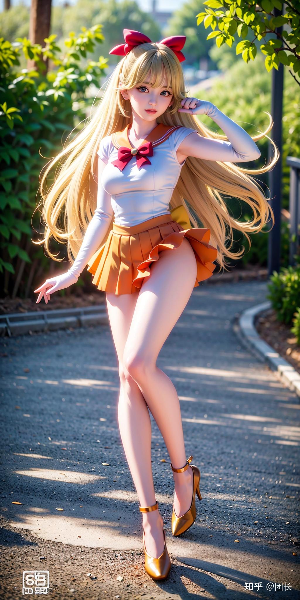 full body, red shoes, venus1, 1girl, solo, sailor senshi uniform, blonde hair, magical girl, blue eyes, orange skirt, elbow gloves, tiara, pleated skirt, hair bow, orange sailor collar, miniskirt, red bow, orange choker, white gloves, very long hair, jewelry, earrings, smile, unparalleled masterpiece, ultra realistic 8k CG, perfect artwork, ((perfect female figure)), narrow waist, chinese deity, looking at viewer, seductive posture, sexy pose, clean, beautiful face, pure face, pale skin, divine goddess, shiny skin, skindentation, glint lora:sailorVenusSailor\_v10:0.7, ulzzang-6500-v1.1, Show belly button lora:chilloutmixss20\_v20:0.3, (8k, RAW photo, best quality, masterpiece:1.2), (realistic, photo-realistic:1.37), ultra-detailed, (long legs:1.3),