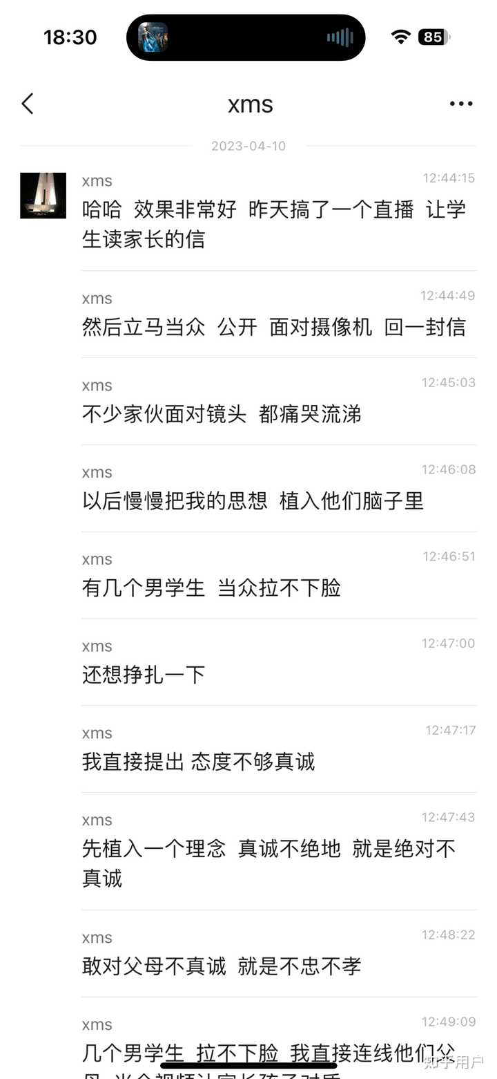 正好今天看到一段聊天记录,应该是某地某个老师向其他人得意洋洋的炫耀自己如何对学生和家长奴化训化的过程,拿出来正好可以回答这个问题。