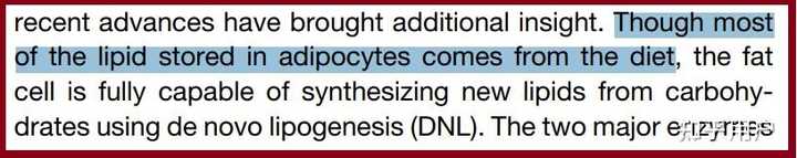 不止一次有权威期刊的论文说了这个问题。2015年,Rosen等人在顶刊cell上发表了一篇论文[53],文中谈到了人体脂肪的来源问题:脂肪细胞中储存的**大部分脂质是吃下去的(食物中的脂肪)—**也就是说,使人发胖的是食物中的脂肪,而非碳水。
