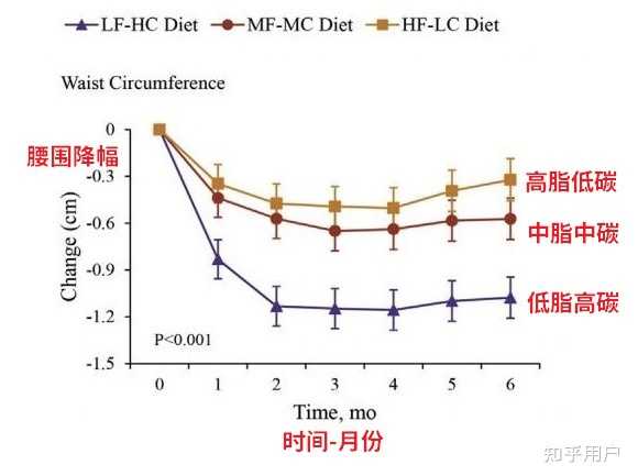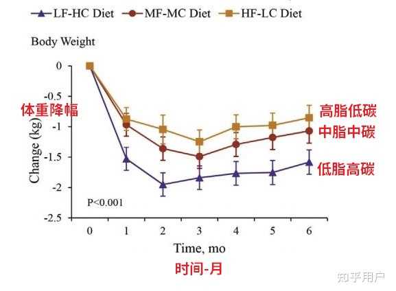 参与者随机分为三种饮食组:低脂高碳组(脂20%/碳66%/蛋14%)、中脂中度组(脂30%/碳/56%/蛋14%)、高脂低碳组(脂40%,碳46%,蛋14%)。