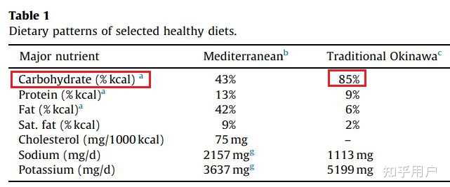 - 冲绳,长寿之乡。科研认为冲绳人的健康和他们的饮食方式密切相关[37][38],他们的主食是红薯,碳水占总热量的85%[39]。
