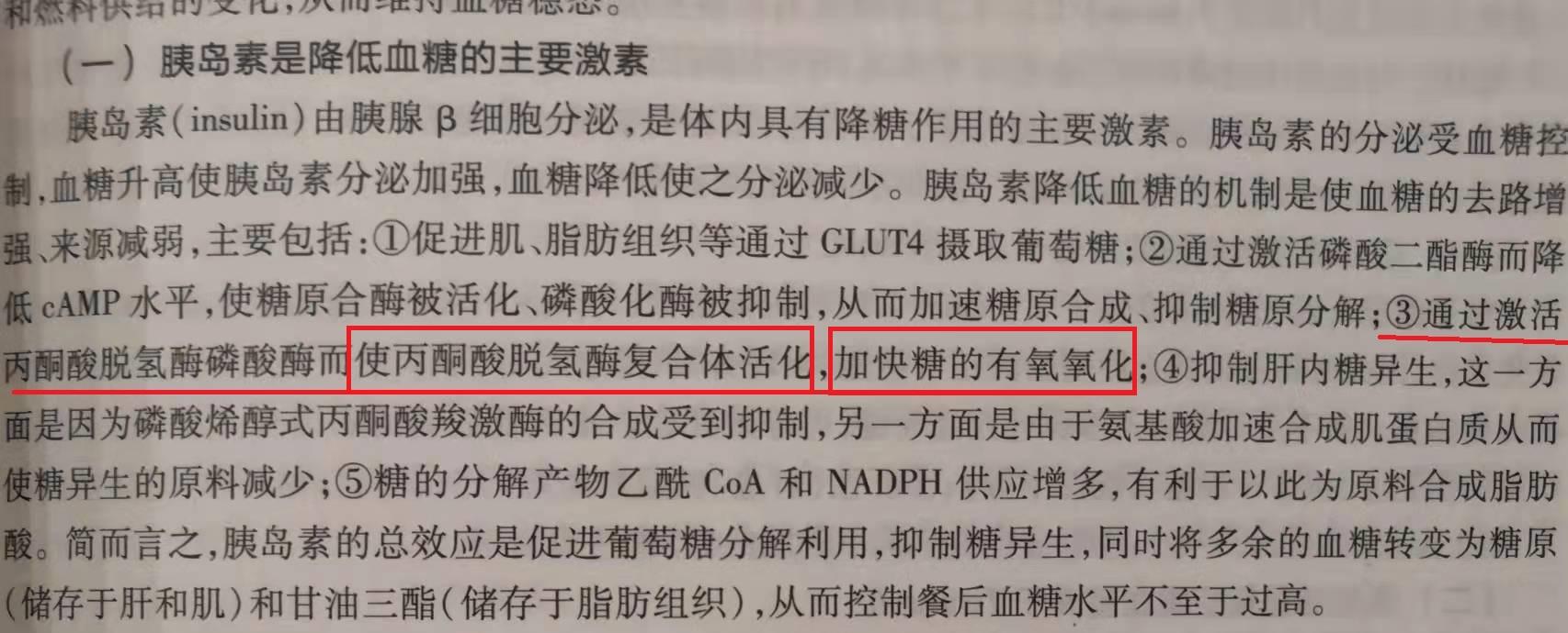 胰岛素能提升PDC活性[95][96][97]。PDC活性提高了,碳水氧化增加,热量损耗增加。这些内容在教材上都有,不是什么新鲜事。
